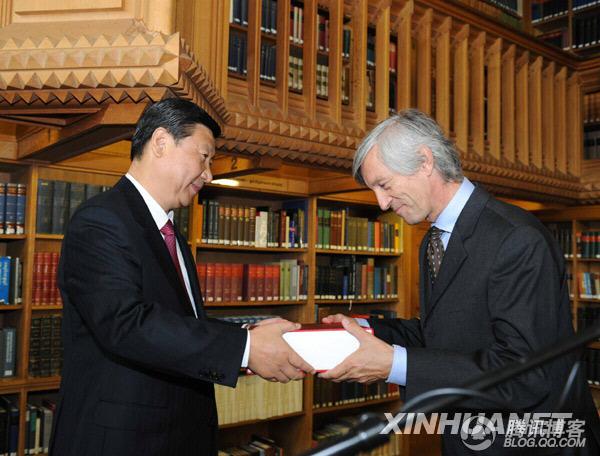 圖:國家副主席習近平向比利時(shí)魯汶 大學(xué)校長(cháng)贈送中華數字書(shū)苑